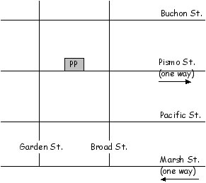 Take Marsh St. exit. Stay on Marsh until you reach Broad St. Turn right on Broad (past Pacific, Pismo) to Buchon. Turn left on Buchon St. Buchon will hit Garden. Turn left on Garden St. Park on Garden and walk to Planned Parenthood on Pismo St. |